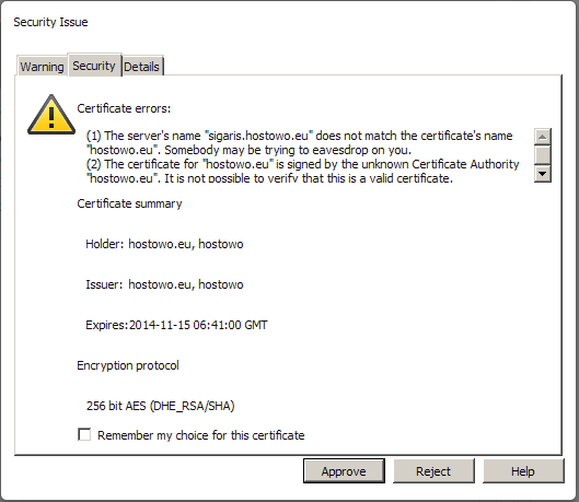 Dostawca hostingu ma na tym samym serwerze hosting i serwer certyfikujący i stąd ostrzeżenia się pojawiają.