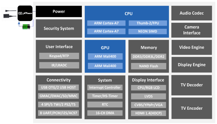 Układ Allwinner A20 jest dwurdzeniowym procesorem ARM Cortex-A7. Posiada on 32 kB pamięci dla instrukcji oraz 32 kB dla danych.