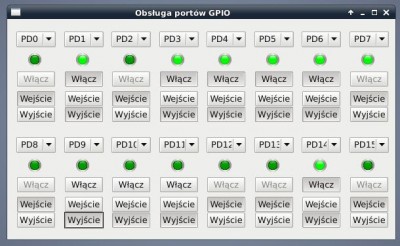 Do testowania modułów jest wykorzystywany specjalnie napisany do tego celu program "Monitor portów GPIO".