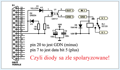 Btw Schemat z EdW jest :no: do podlaczenia pod LPT ale pod RS 232 dlatego nalezy zamienic podlaczenia pinow :idea: