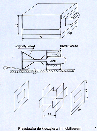 Pilot autoalarmu, (lub drugi kluczyk, jeżeli pilot jest w kluczyku) najwygodniej jest umocować za pomocą agrafki, na krótkim łańcuszku wewnątrz kieszeni ubrania, tak, aby znajdował się ok. 10 cm od dna kieszeni. Można wtedy łatwo go znaleźć, oraz otwierać i zamykać drzwi nie wyjmując z kieszeni. Przystawkę do kluczyka z transponderem immobilisera (pudełko z cewką) trzeba umocować w niewidocznym miejscu, ale tak, żeby kluczyk można było łatwo wkładać i wyjmować. W Octavii pudełko umocowałem na półeczce na drobiazgi pod pulpitem po stronie kierowcy, skierowując go szczeliną w prawą stronę. Kluczyk jest niewidoczny i jednocześnie można go łatwo wkładać i wyjmować. W praktyce nigdy go nie wyjmuję, nawet w nocy i przy wyjeździe do „dużego miasta”. Można to pudełko zamontować nawet w zamykanym schowku. Jeżeli przycisk „start-stop” nie będzie wyeksponowany w krzykliwy sposób („pseudo tuning”) są bardzo małe szanse na uprowadzenie samochodu nawet wtedy, gdy nie będzie dodatkowego zabezpieczenia. Trzeba wiedzieć jak uruchamia się samochód. Każda nietypowa przeszkoda skutecznie zniechęca złodzieja.