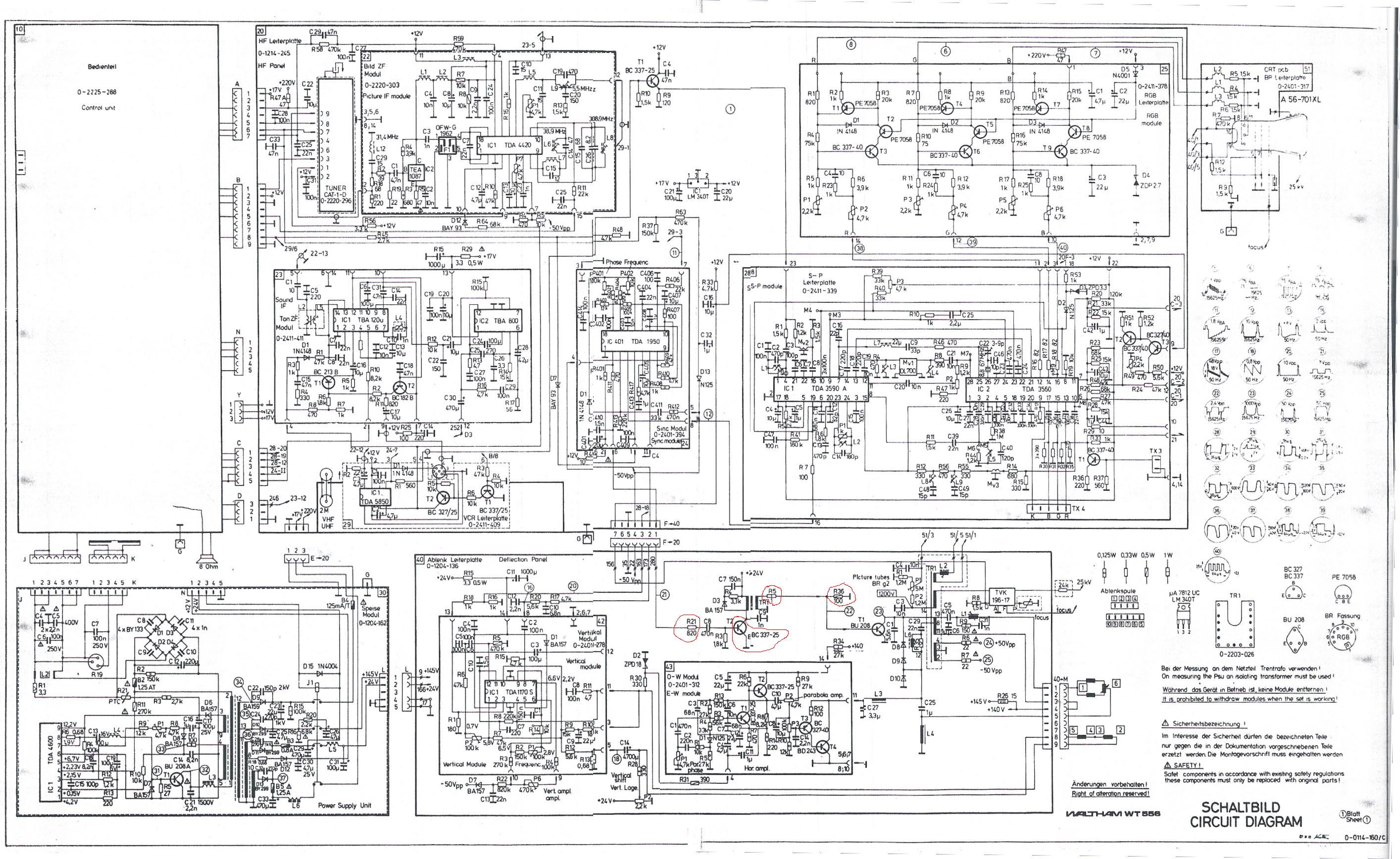 Jakiś czas temu podczas pracy z telewizora zaczął unosić się smrodek... Telewizor pracuje normalnie ale cały czas smierdzi. Wymieniłem parę elementów (na schemacie zaznaczone)