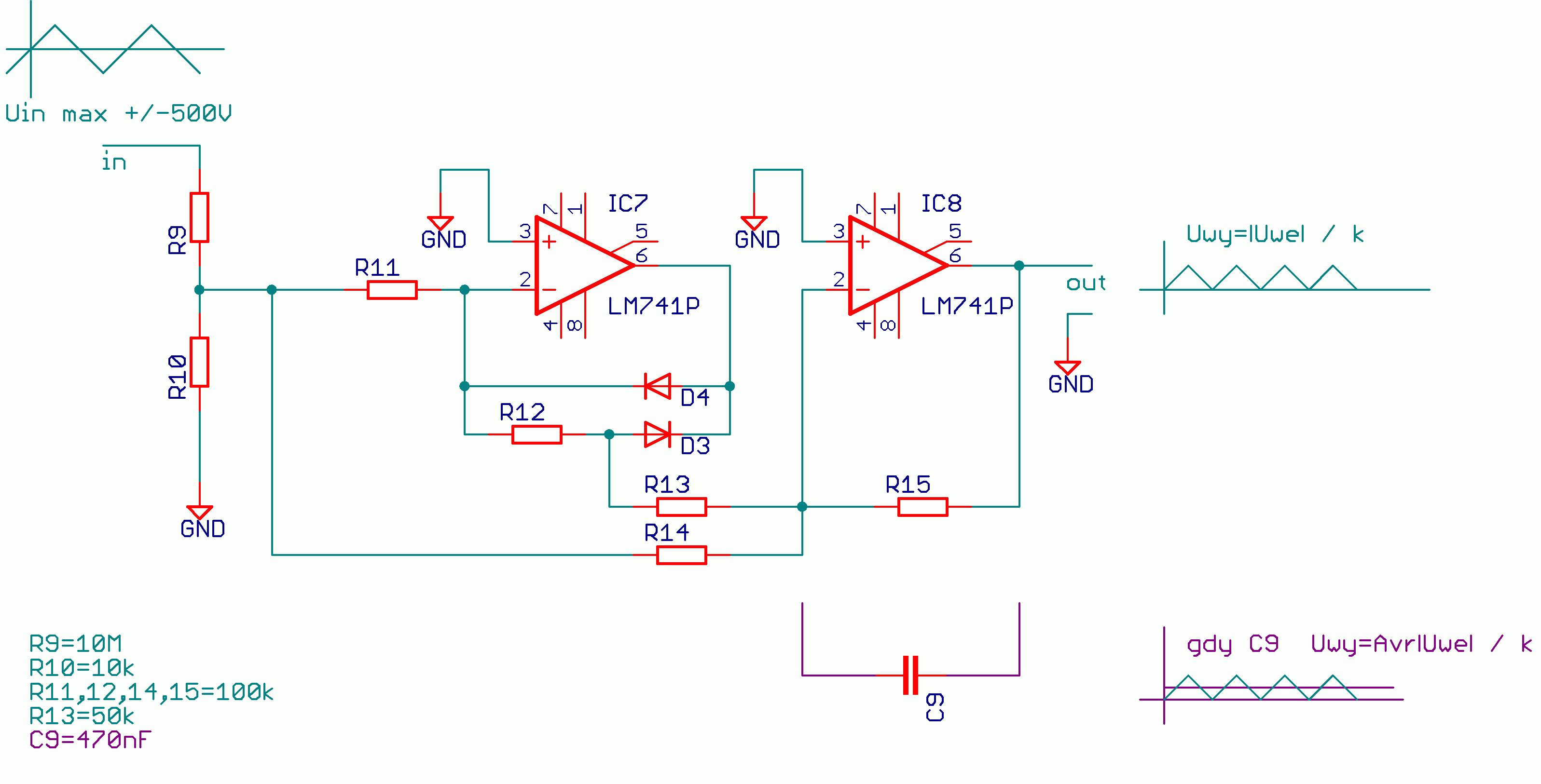 aktywny prostownik sygnalu wejsciowego, z dzielnikem