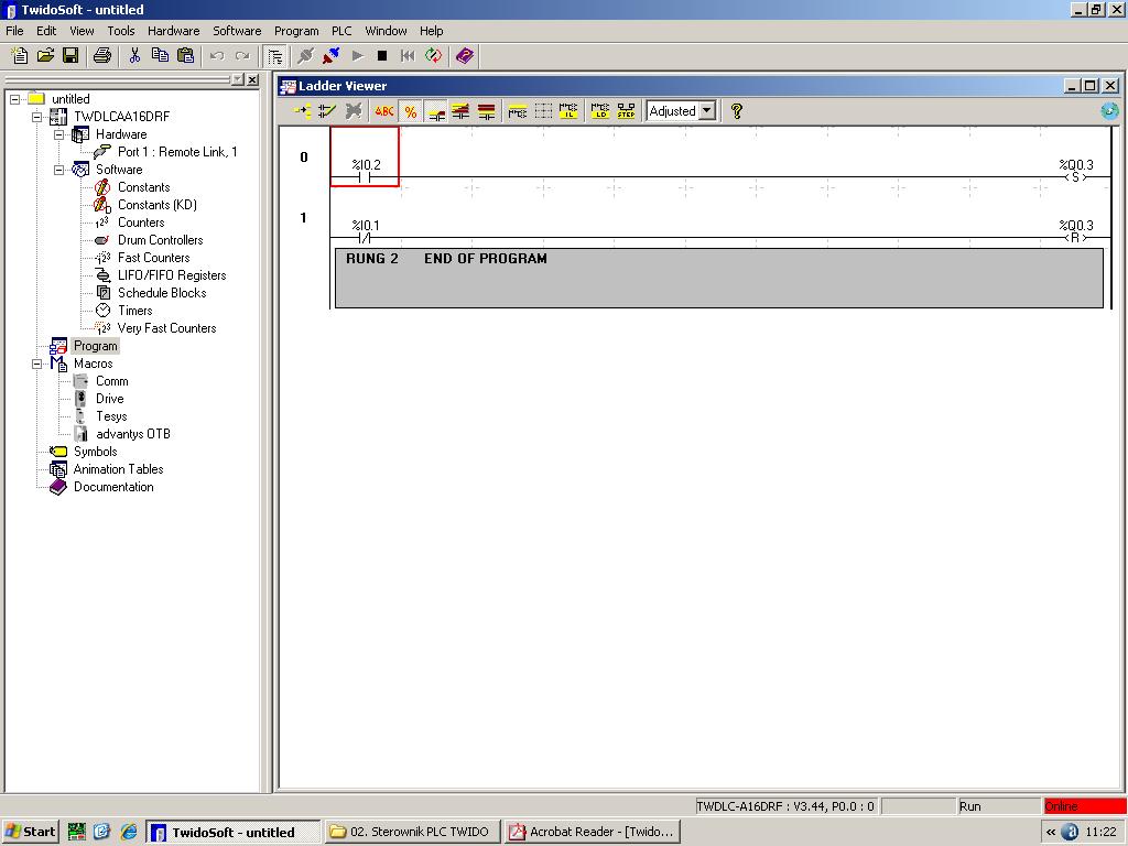 Dzięki ale listingu ktory napisałem napewno jest dobrze bo sam program Twinsoft mi go automatycznie napisał ja tylko narysowałem w języku drabinkowym ten program i po podłączeniu steownika PLC do komptera i po wykonaniu odpowenich operacji w programie Twinsoft program mi dziłał gdy naciśnołem zielony buzik świeciła żarowka gdy nacisnełem czerwony gasła . Prosze narysować jak bedzie wyglądał algorytm dla mojego listingu patrz poniżej