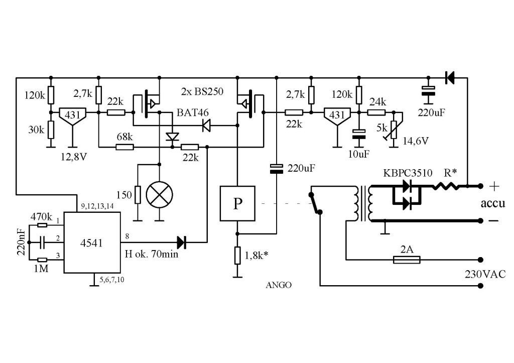 O ile trudno ustalić potrzeby danego accu, to wszystkie mają jedną wspólną cechę - oznaki pełnego naładowania. Postanowiłem oprzeć się na 14,4V. Po wystąpieniu takiego U na klemach trafo ma być wyłączane a włączane ponownie po spadku do 12,8V. I tak w kółko.