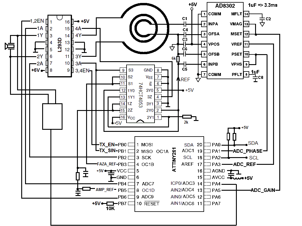 Najlepiej będzie jednak zasilać cewkę TX przebiegiem sinusoidalnym, dlatego L293 wylatuje a jego miejsce zajmie LM386 z filtrem dolnoprzepustowym dla sygnału TX_SIN na wejściu.