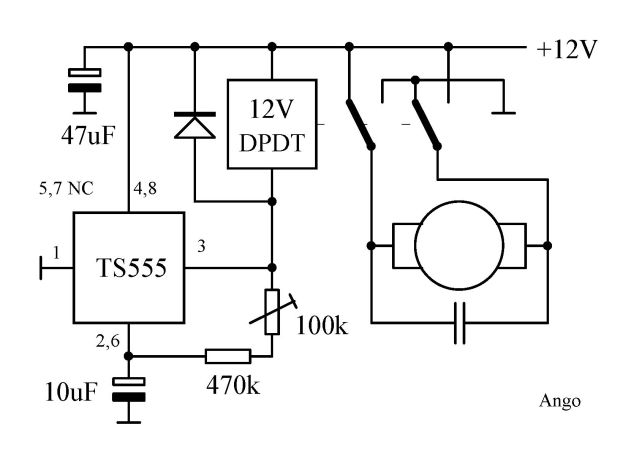 Witam szukałem na forum lecz niestety nie znalazłem. Potrzebuję zrobić jak najprościej układ który będzie zmieniał biegunowość na wyjściu co np.5sec dokladniej to ma być sterownik do silnika aby zmieniać kierunek obrotu. Czy byłby ktoś w stanie wykonać schemat czegoś takiego podobno można przy pomocy 2xNe555 i mostka H lecz niestety ja nie potrafię
