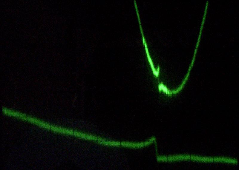 Ząbek to pojedynczy uskok, nie widać za nim oscylacji.