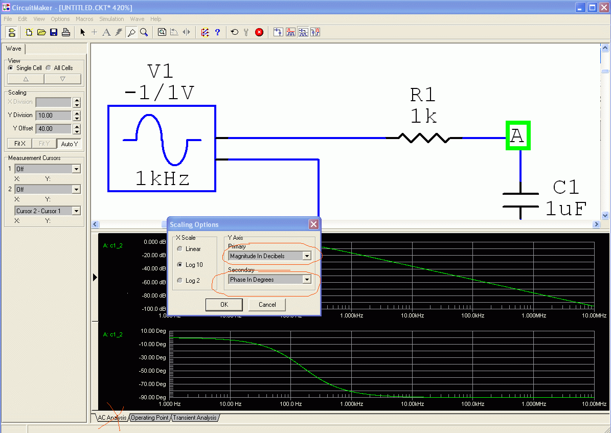 Sprawdź punkty Zarejestruj sięAnaliza częstotliwościowa w Circuit Maker