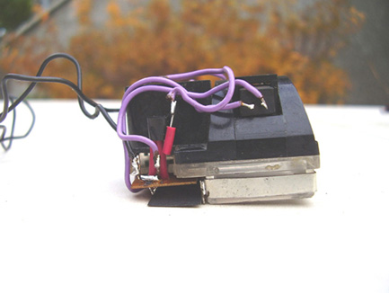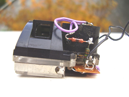 Do podświetlenia użyte zostały dwie diody LED (zielone). Jedna podświetla skalę od tyłu, a druga podświetla wskazówkę. Skala została wycięta z cienkiej miedzianej blaszki i pomalowana. Nie można robić skali z papieru, gdyż papier wypacza się pod wpływem wilgoci i temperatury. Obudowa została zlutowana z cynowanej blachy grubości 0,3mm.