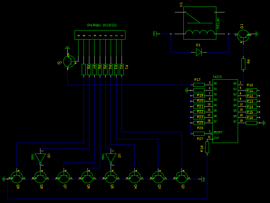 jestem programistą i wziąłem sobie za wyzwanie stworzenie systemu sterowania ..wszystkim (oczywiście z przymrużeniem oka ;]). Głównie chodzi o to, że na wyjściu LPT zostaje ustawiony jakiś tam bajt, np. 11101110. Następnie system go interpretuje i uruchamia odpowiedni moduł, który następnie wykonuje swoje zadanie. Jako że elektronika nie jest moim "językiem ojczystym", przeszukałem cały internet i na bazie tego, czego się dowiedziałem, skleciłem jakiś tam schemat.
