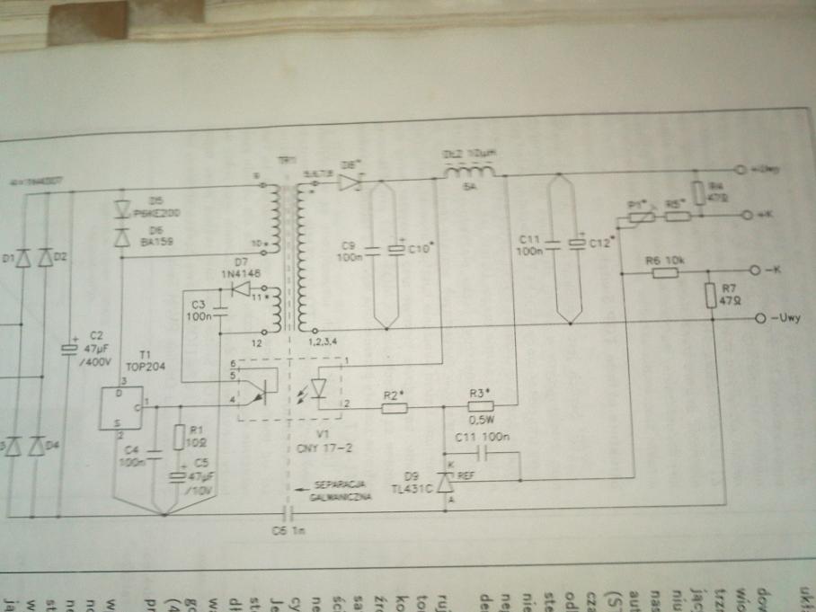 Zbudowałem zasilacz inpulsowy na podstawie artykułu Praktyczny Elektronik nr 7,8/1997.Sprawdziłem kilkakrotnie jakość lutów i wszystko wygląda dobrze.Po podłączeniu do sieci 230 V jest możliwość regulacji napięcia wyjściowego 12 V.
