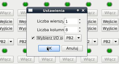 Liczbę wieszy i kolumn w jakich zostaną umieszczone kontrolki można zmienić w oknie dialogowym po wywołaniu polecenia "Ustawienia" z menu rozwijanego.